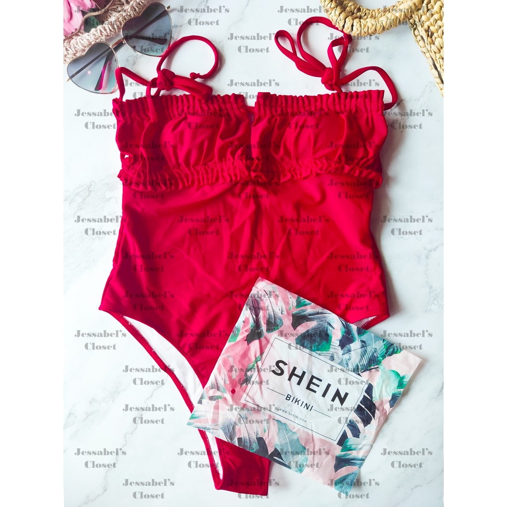 Shein One Piece Red High Leg Drawstring Padded Swimsuit S Shopee Philippines